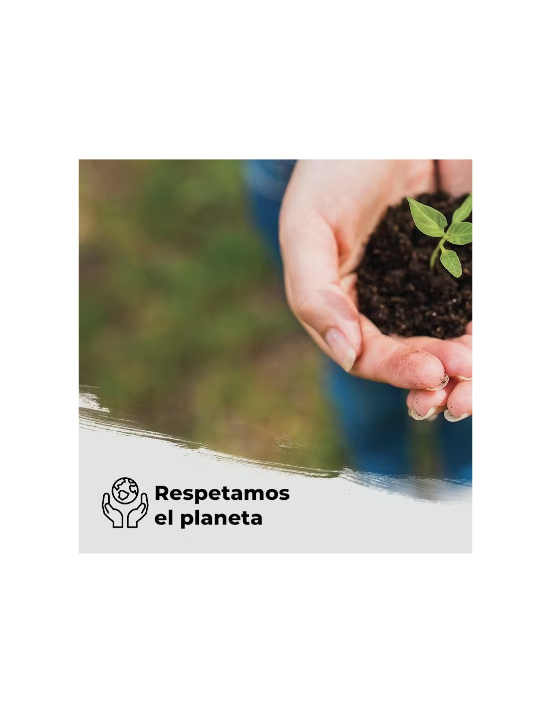 - Producto sostenible: fabricado con materiales respetuosos con el planeta.