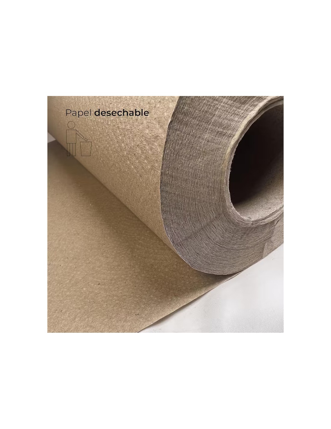 Papel Camilla Ecológico Natural gofrado con precorte cada 40 cm. Pack de 6 rollos sostenibles, suaves y resistentes. Ideal para clínicas, spas, estética y centros médicos.