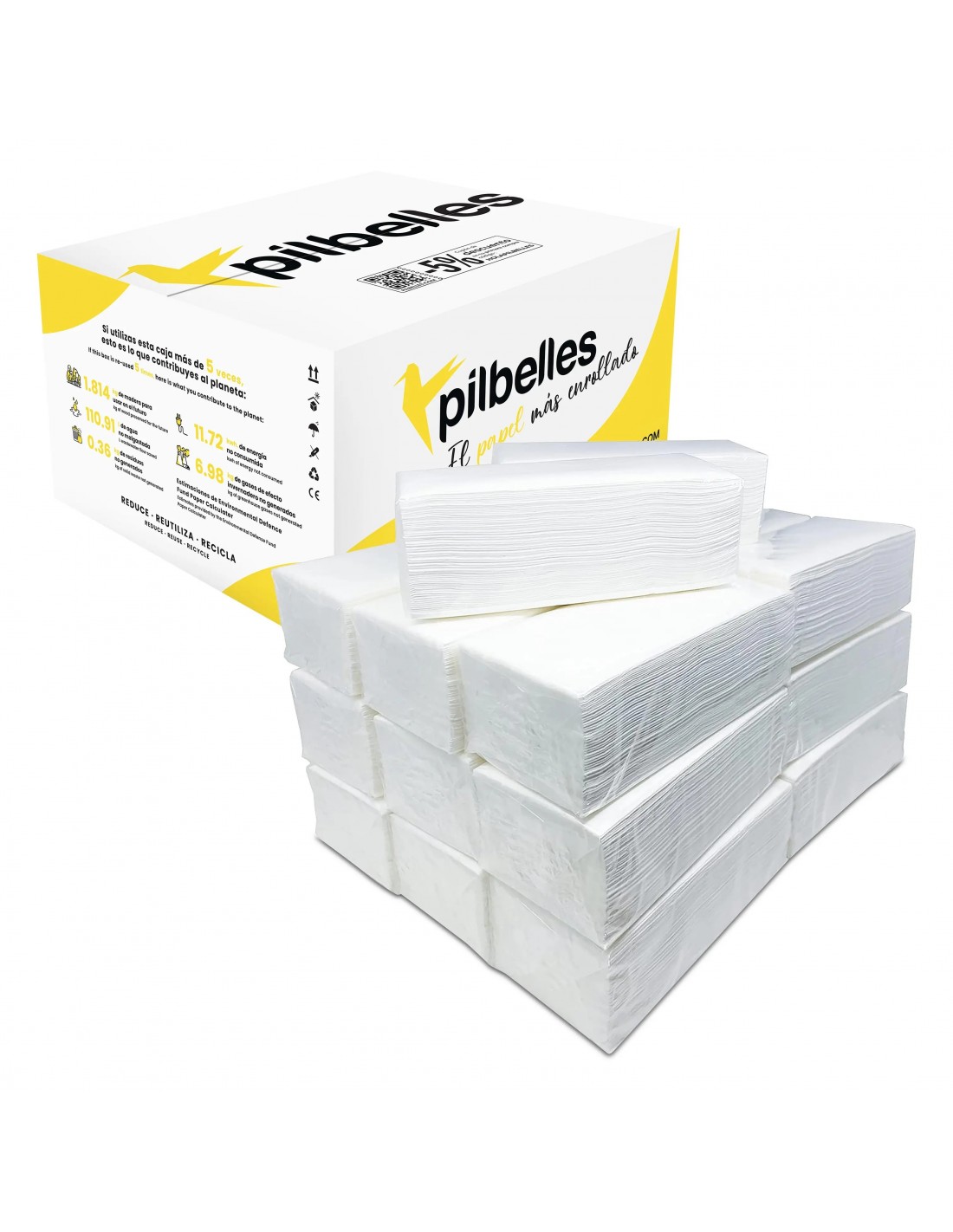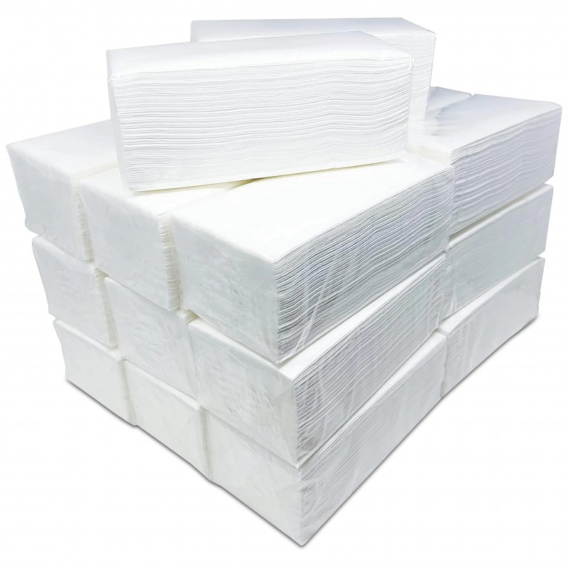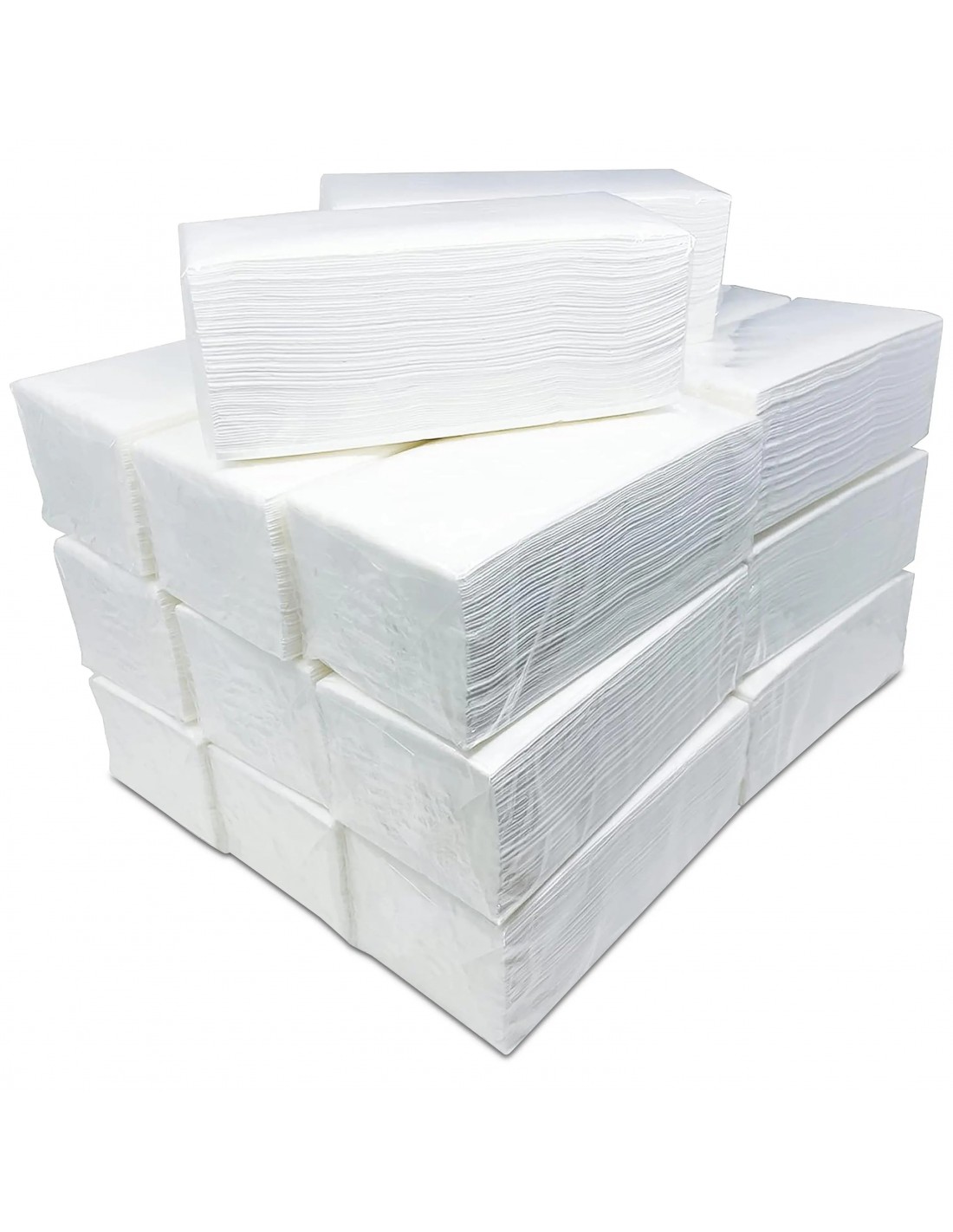 Toallas de papel zigzag pasta 2 capas, blancas y absorbentes. Pack de 3000 uds (20x150), suaves y resistentes, ideales para higiene de manos en oficinas, hostelería, hospitales y más.
