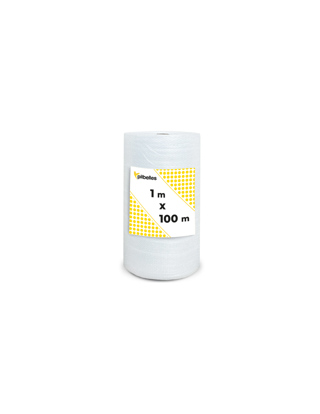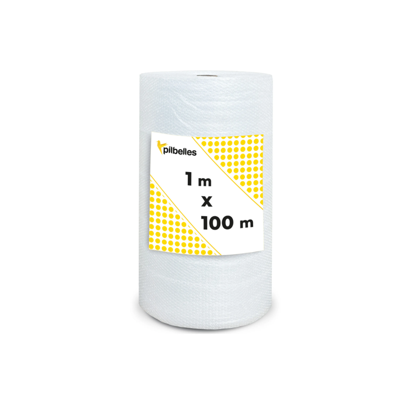 Rollo de plástico de burbujas 1x100 m. Ligero, resistente y fácil de usar. Ideal para embalar, proteger y transportar productos frágiles. Máxima seguridad con 980.000 burbujas.