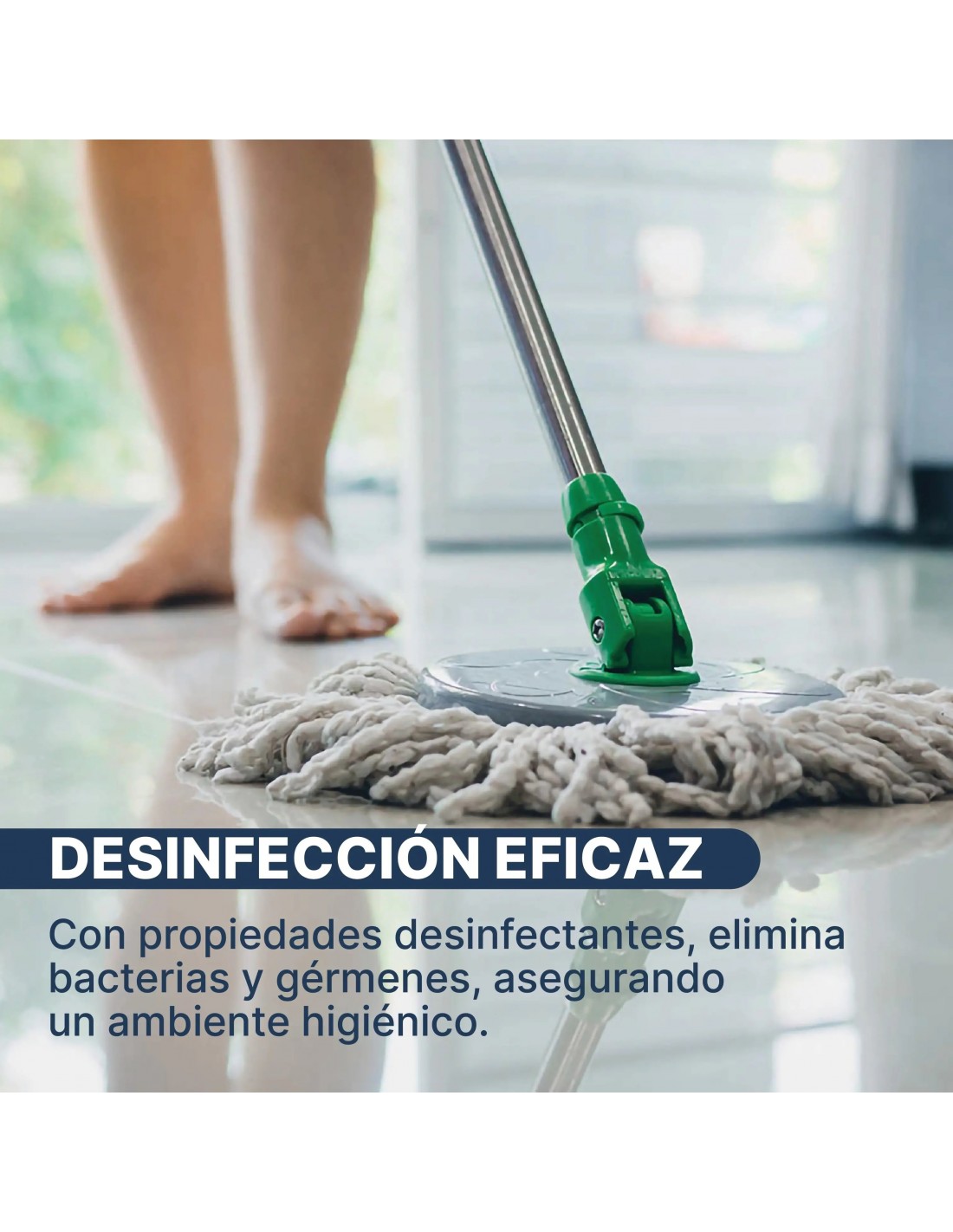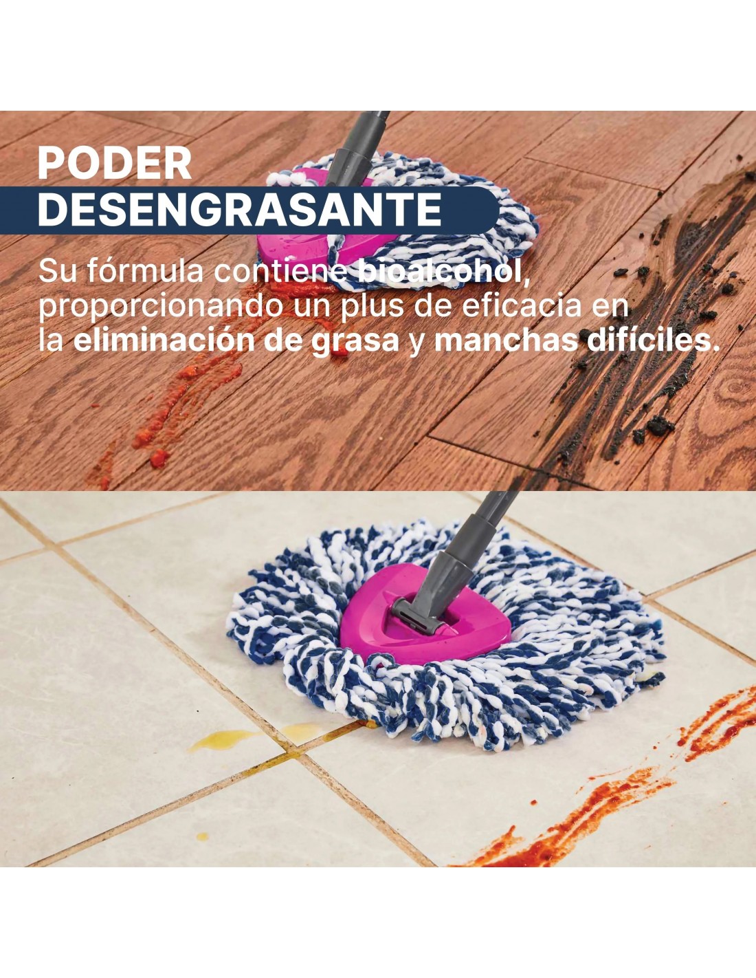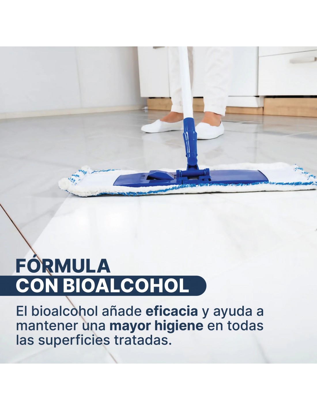 El fregasuelos aroma floral combina un poder limpiador, desinfectante y desengrasante, asegurando espacios libres de bacterias y gérmenes. Su fórmula con bioalcohol aporta mayor eficacia y un plus de higiene en cada aplicación.