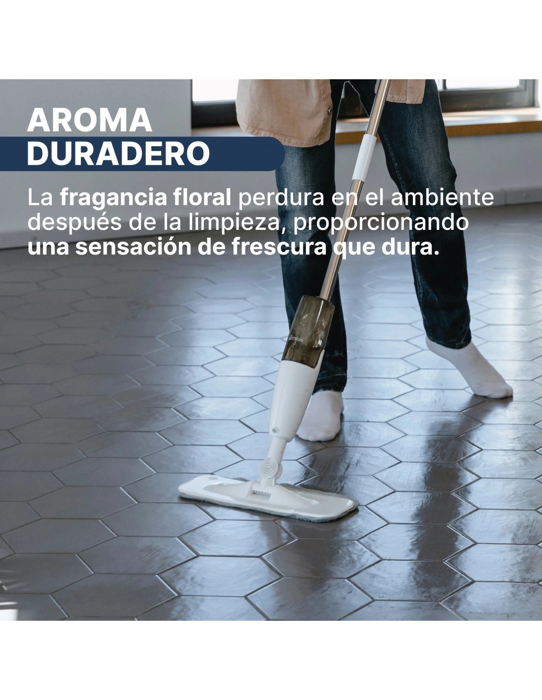 Además de limpiar profundamente, este limpiador de suelos aromático deja un ambiente fresco y duradero. La fragancia floral convierte la limpieza en una experiencia más agradable, aportando bienestar y sensación de higiene en cada espacio.
