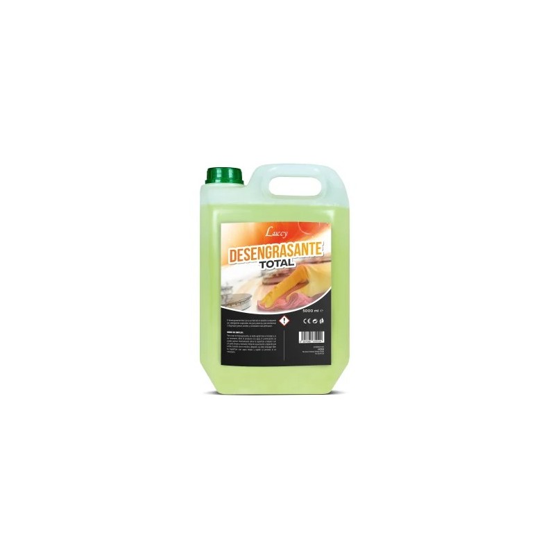 Desengrasante industrial 5L. Fórmula alcalina potente que emulsiona y elimina grasa, aceite y suciedad en cocinas industriales, talleres y fábricas.