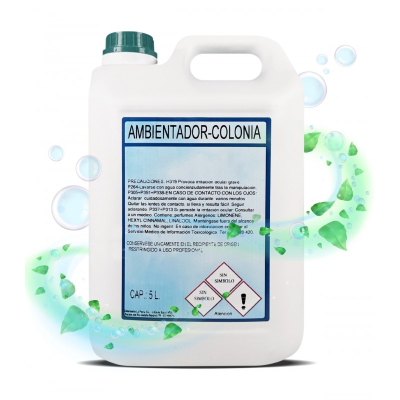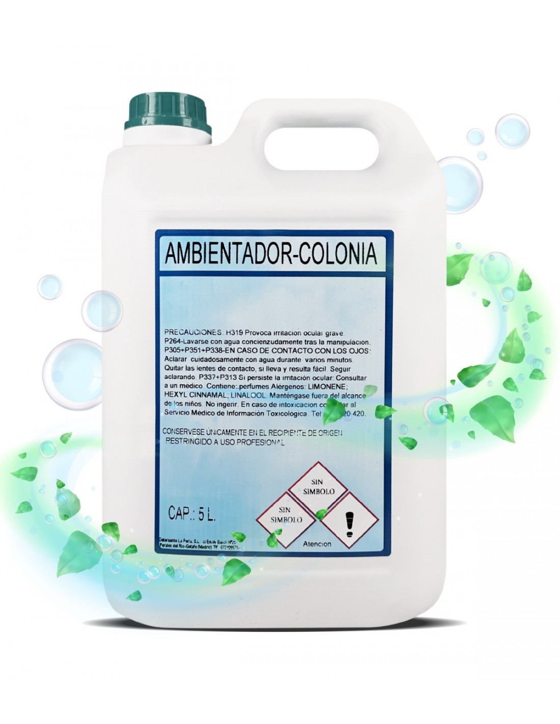 Ambientador profesional Aroma Colonia en formato 5 litros. Fragancia fresca y duradera para crear espacios agradables en negocios y hogares.
