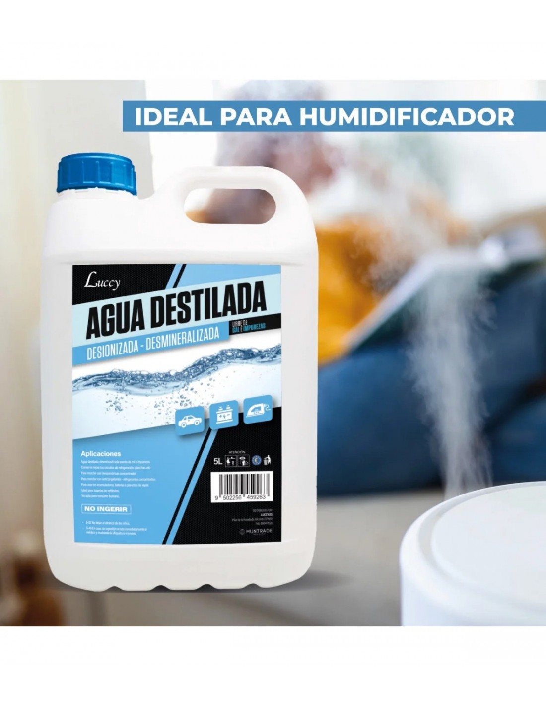 El Agua Destilada 5L es 100% pura, sin impurezas, ideal para baterías, planchas, esterilización, máquinas CPAP, limpieza y riego de plantas delicadas.