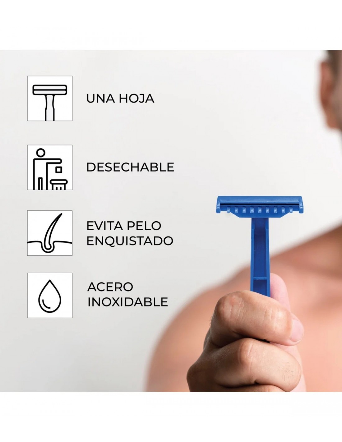 Las cuchillas rasuradoras desechables de 1 hoja están fabricadas con acero inoxidable de alta calidad, lo que garantiza un afeitado preciso y seguro en todo tipo de pieles y longitudes de vello. Su diseño ergonómico permite un uso cómodo y eficaz tanto en el rostro como en el cuerpo.