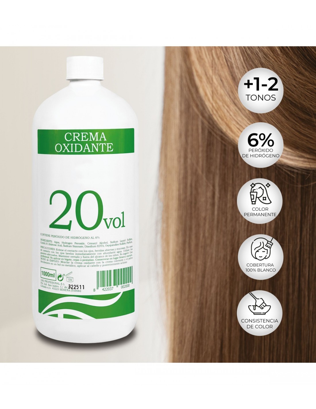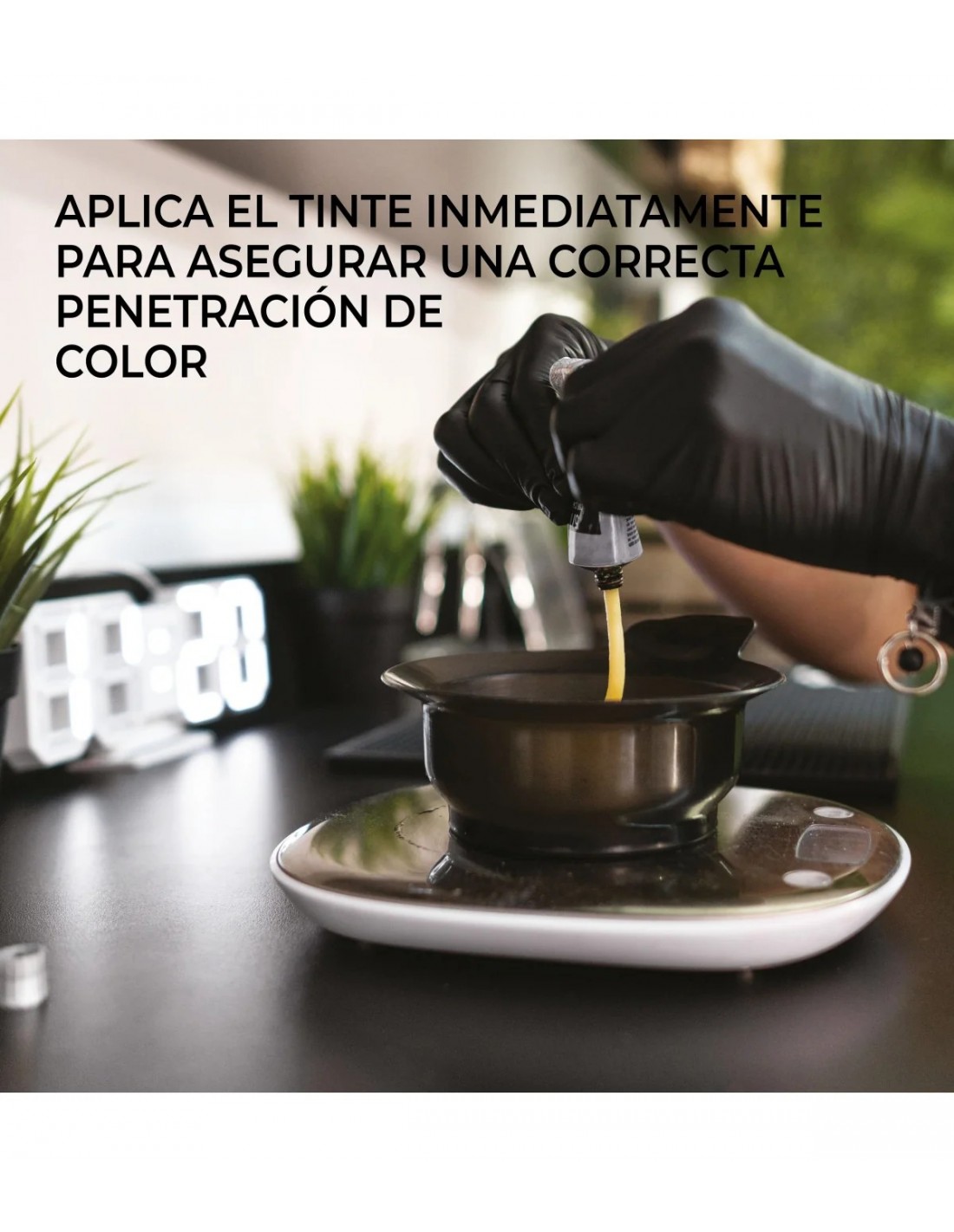 - Textura cremosa: facilita la mezcla y la aplicación con tintes y decoloraciones.