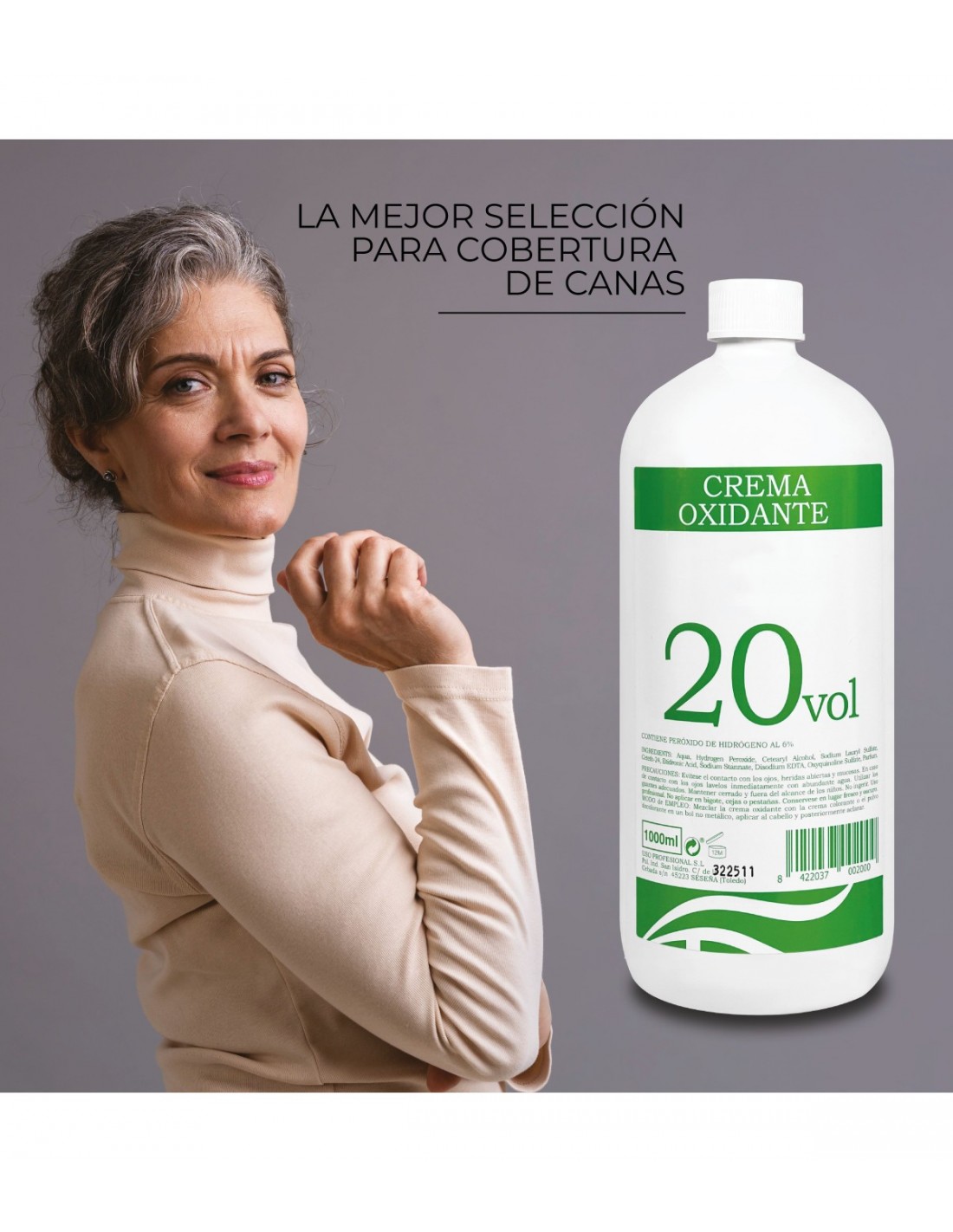 La Oxigenada en Crema 20 Volúmenes 1L es ideal para trabajos de peluquería, aclarando el cabello hasta dos tonos y ofreciendo una cobertura eficaz de canas con resultados profesionales.
