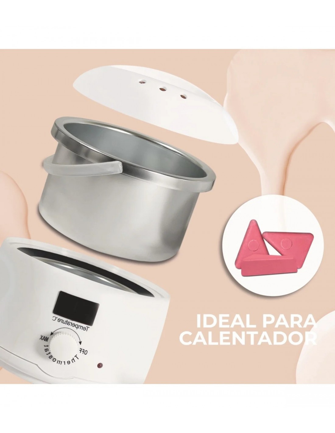 - Calienta: derrite las pastillas de cera en un calentador hasta obtener una textura uniforme.