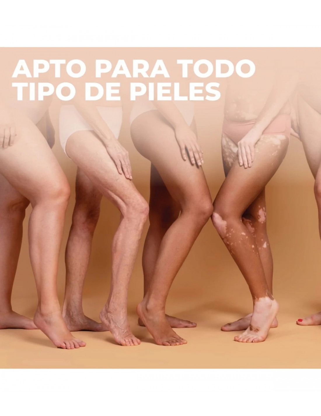 - Versátil: perfecta para zonas grandes (piernas y brazos) y áreas sensibles (rostro, ingles y axilas).