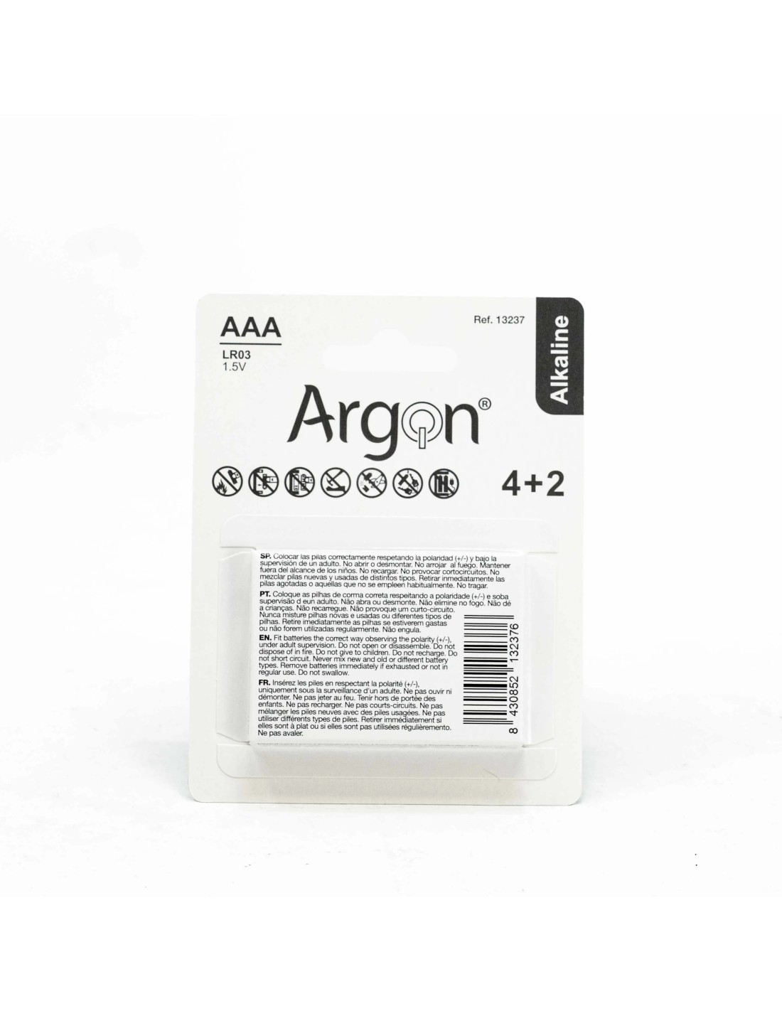 Pack de 6 pilas alcalinas Argon LR03 AAA de alto rendimiento. Energía duradera y segura para mandos, relojes, cámaras, juguetes y dispositivos de uso diario.